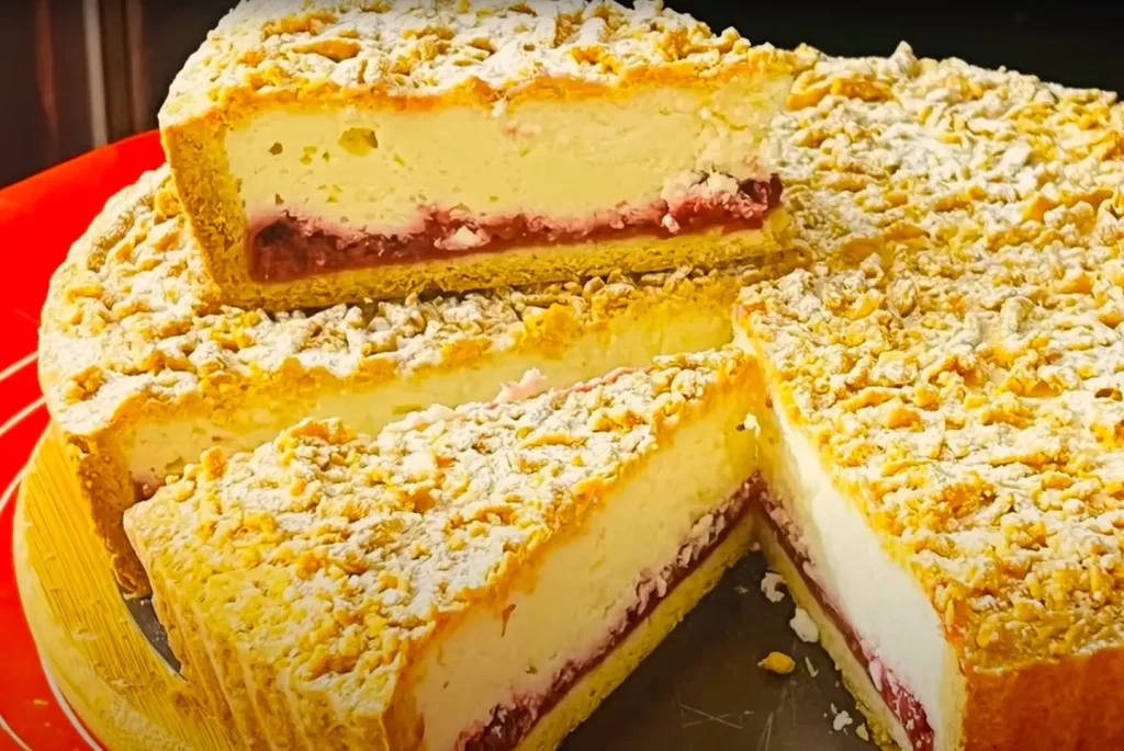 Смакота до чаю: солодкий пиріг із малиною та сиром. Два шари неймовірно ніжної начинки!