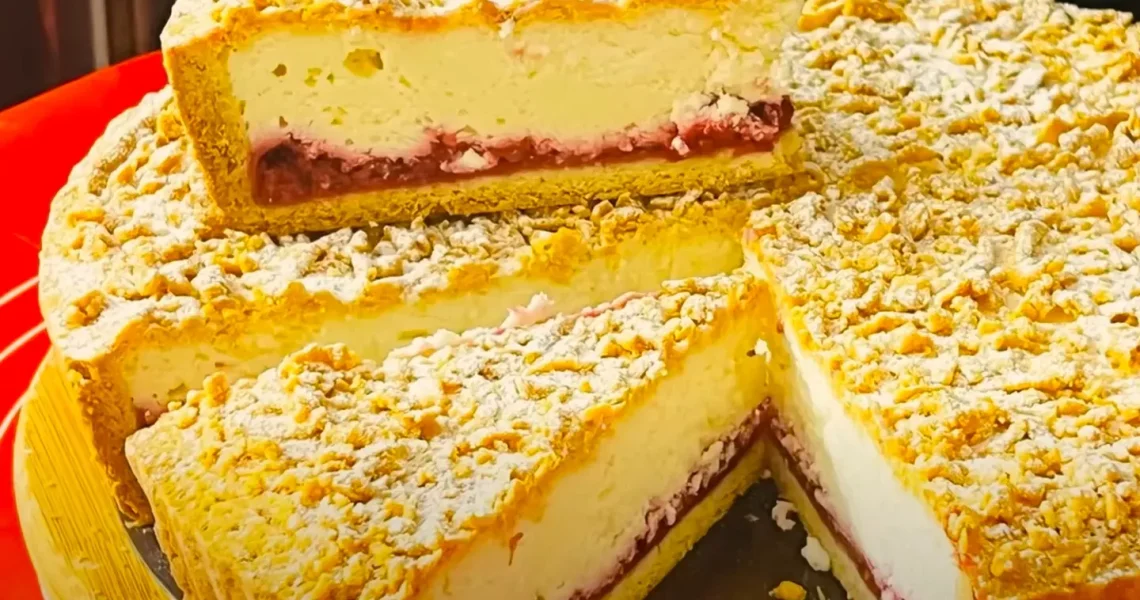 Смакота до чаю: солодкий пиріг із малиною та сиром. Два шари неймовірно ніжної начинки!