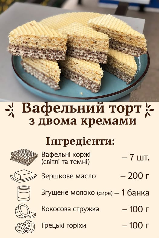 Вафельний торт з двома кремами — без випічки, простий і неймовірно смачний