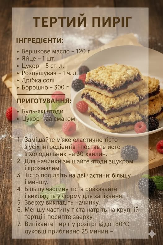 Випікайте пиріг у розігрітій до 180°C духовці приблизно 25 хвилин.