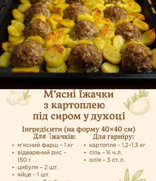Інгредієнти (на форму 40×40 см) Для м’ясних їжачків: м’ясний фарш (свинина або свинина + яловичина) — 1 кг відварений рис — 150 г (приблизно ½ […]
