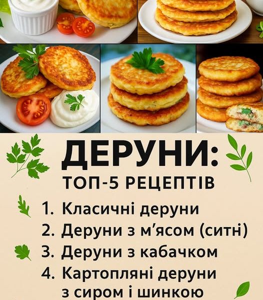 Хрусткі зовні, ніжні всередині — деруни завжди смакують! Обирайте свій улюблений варіант і готуйте на сніданок або вечерю. 1. Класичні деруни Інгредієнти: картопля — 6 […]