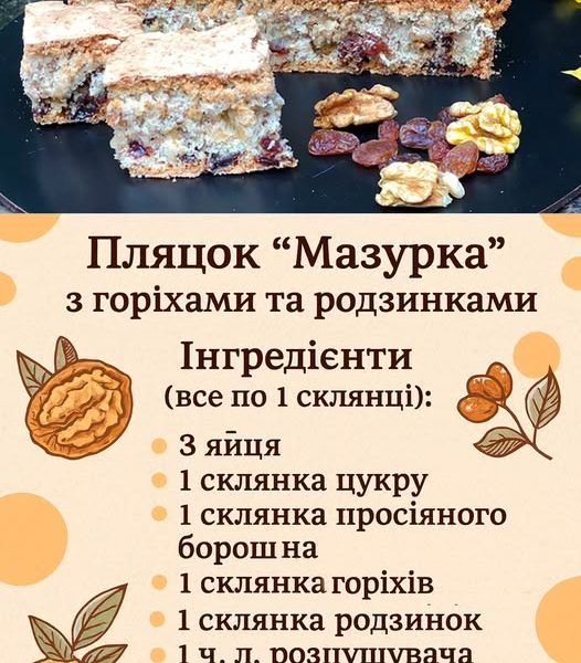 “Мазурка” — це той пляцок, який завжди вдається. Ніжний, ароматний, із приємною горіховою ноткою та соковитими родзинками — він стане чудовою випічкою до чаю чи […]