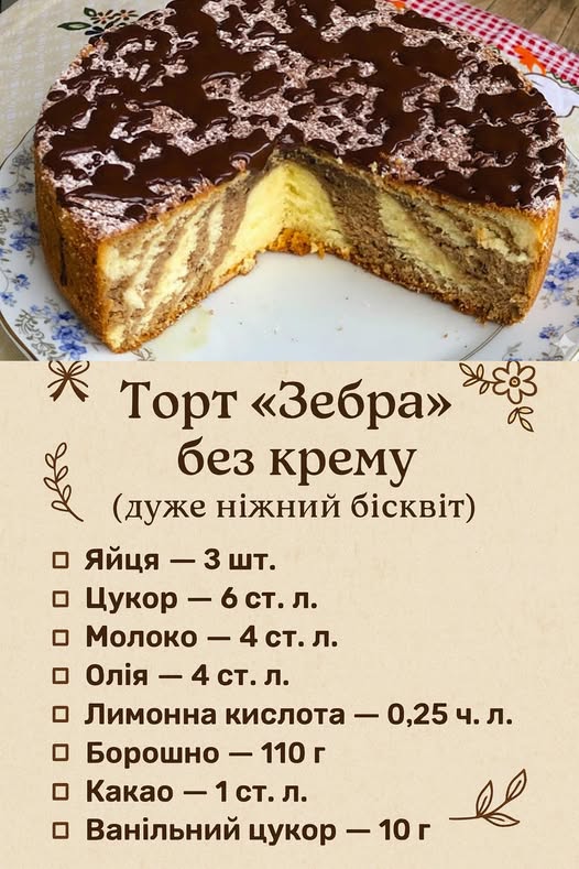 Торт «Зебра» без крему (дуже ніжний бісквіт)