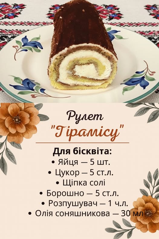 Перекладіть рулет у холодильник на 2 години, щоб крем стабілізувався.
