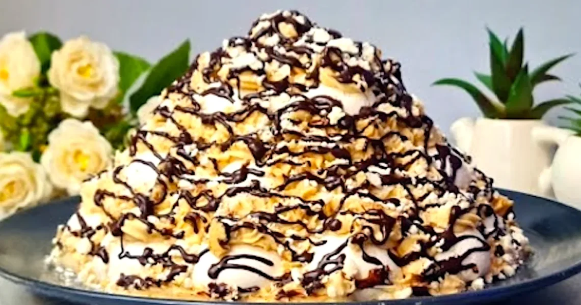 Меренговий торт «Еверест» підкорює серце з першого шматочка — простий у приготуванні, без борошна, без зайвих клопотів, але з ідеальним поєднанням текстур і ароматів! Ніжний, хрусткий зовні й неймовірно кремовий усередині.