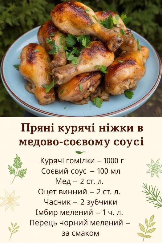Любите солодкуваті, ароматні маринади? Тоді ці ніжки — точно для вас! Вони виходять соковиті, рум’яні та дуже ароматні завдяки ідеальному поєднанню меду, соєвого соусу та спецій.