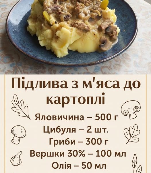 Найкраще смакує така підлива з класичним картопляним пюре, але також пасує до гречки, макаронів або домашніх клусок.