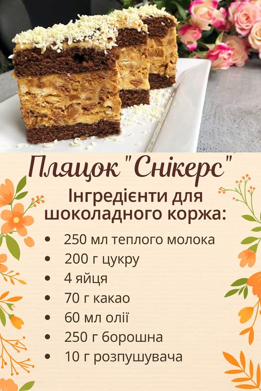 Пляцок “Снікерс” – смак улюбленого батончика у десерті!