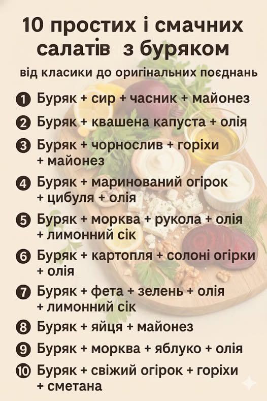 Усі інгредієнти натерти на великій тертці та заправити сметаною або олією.