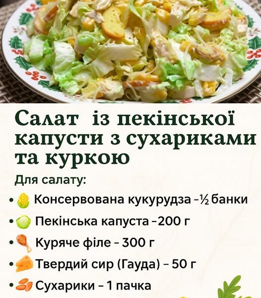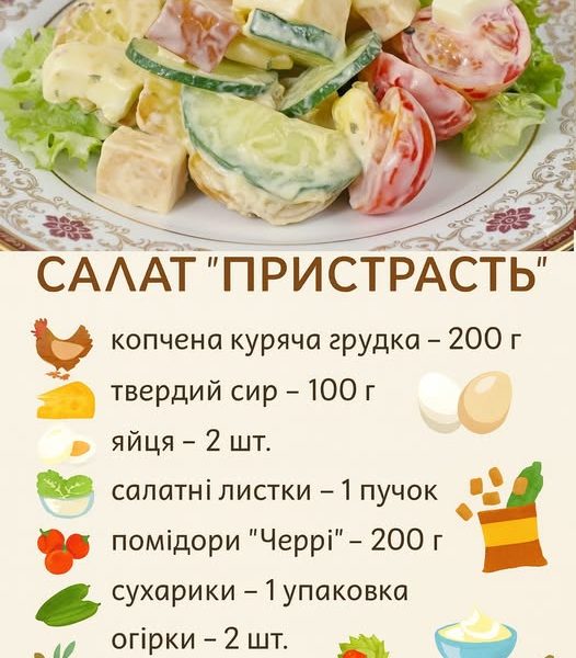 Цей салат точно підкорить серце кожного! Легкий у приготуванні, з апетитним поєднанням копченої курочки, свіжих овочів і пікантної заправки. Подавайте для романтичної вечері, святкового столу […]