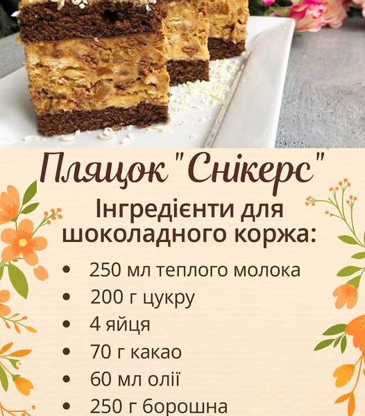 Хочете насолодитися шоколадом, карамеллю та арахісом у кожному шматочку? Тоді цей пляцок точно для вас! Інгредієнти для шоколадного коржа: 250 мл теплого молока 200 г […]