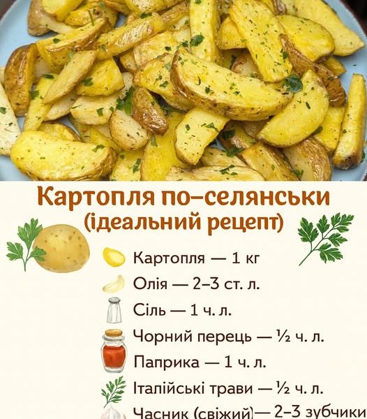 Інгредієнти (на 4 порції): Картопля — 1 кг Олія — 2–3 ст. л. Сіль — 1 ч. л. Чорний перець — ½ ч. л. Паприка […]
