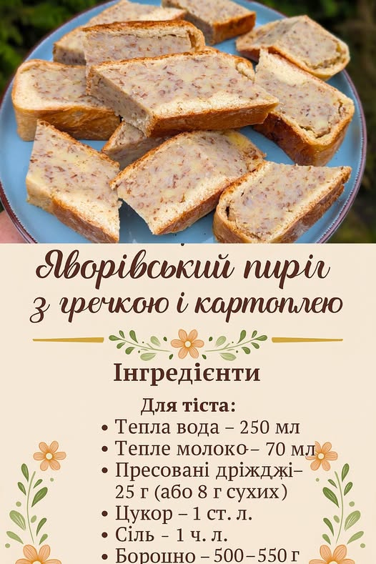 Домашній Яворівський пиріг — страва з глибокими традиціями, що поєднує ніжне дріжджове тісто та ароматну начинку з картоплі, гречки й смаженої цибулі. Результат — м’який, духмяний пиріг із золотистою скоринкою, який смакує і гарячим, і холодним.