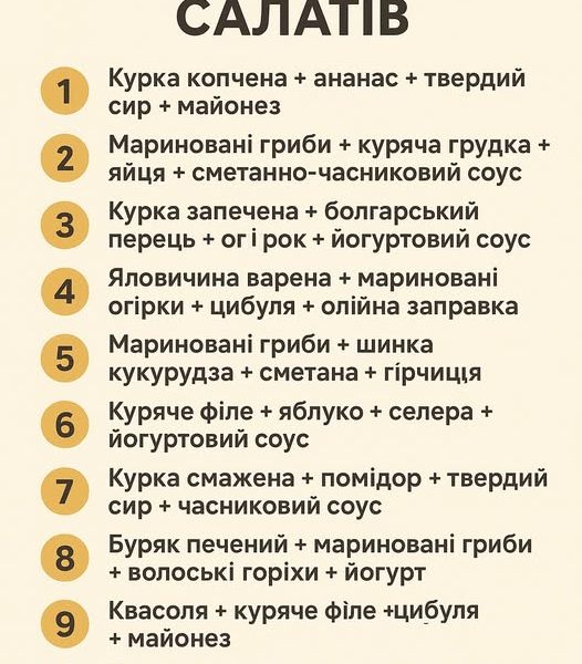 10 найкращих салатів — короткі рецепти з точними кількостями